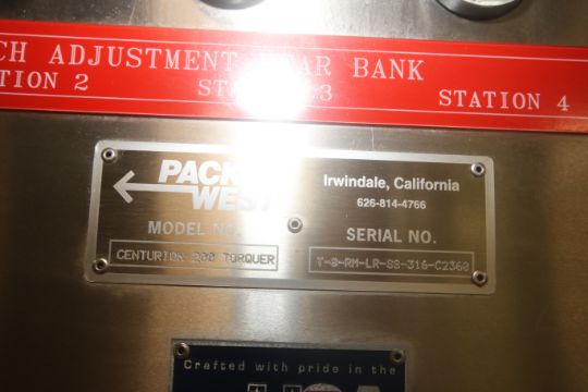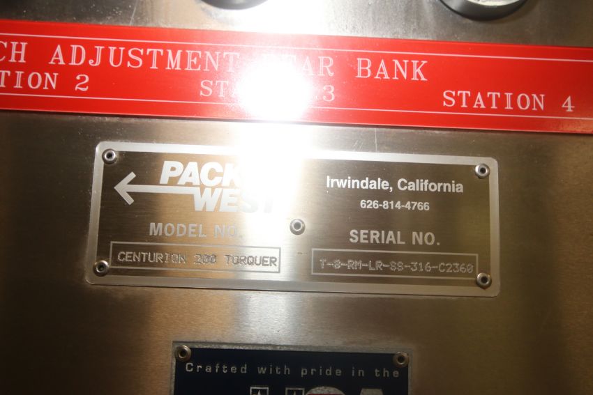 Pack West Cap Torquer, M/N CENTURION 200 TORQUER, S/N T-0-RM-LR-SS-316-C2360, Mounted on S/S Frame (IN#68084)(LOCATED AT M. DAVIS GROUP AUCTION SHOWROOM--PITTSBURGH, PA) (Rigging, Handling & Site Management Fee: $150.00) ***THIS LOT IS SUBJECT TO THE BULK BID FOR LOT 25***