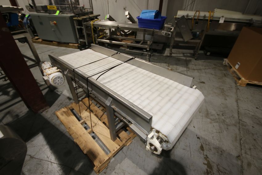 Straight Section of S/S Conveyor, with Aprox. 24" W Plastic Belt, Overall Length: Aprox. 79" L with Drive, Mounted on S/S Frame (IN#68988)(LOCATED AT M. DAVIS GROUP AUCTION SHOWROOM--PITTSBURGH, PA) (Rigging, Handling & Site Management Fee: $50.00)