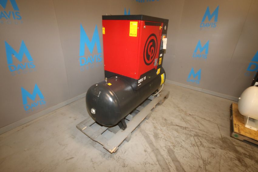2015 Chicago Pneumatic 15 hp Screw Air Compressor, Type QRS15HP 500 UL, S/N CAI843972, Mounted on 64" L x 24" W Horizontal Receiver, 145 working psi (10 bar), 7,549 Metered hrs, 208/230/460V 3 Phase (IN#68906)(LOCATED AT M. DAVIS GROUP AUCTION SHOWROOM--PITTSBURGH, PA)(Rigging, Handling & Site Management Fee: $100.00)