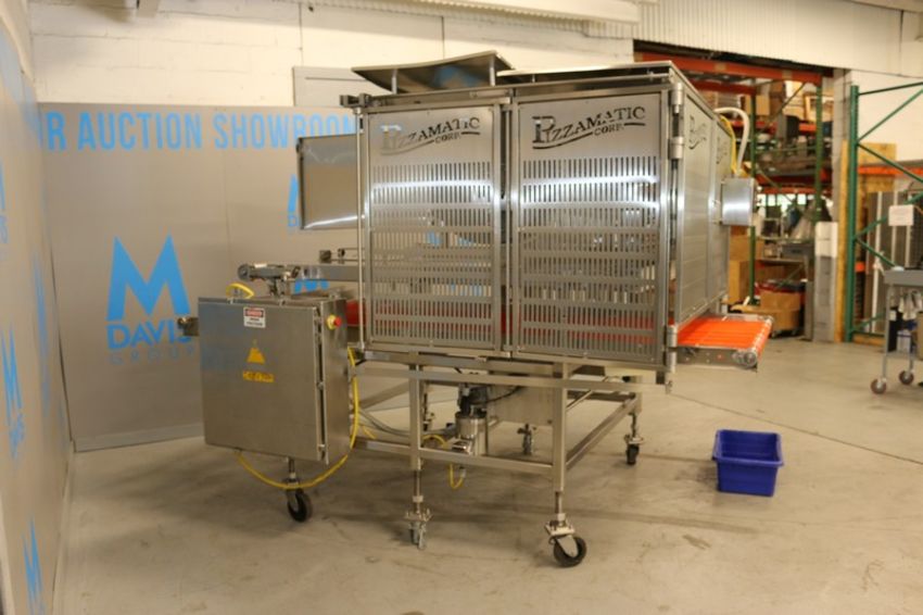 S/S Pizzamatic Water Fall Applicator, M/N WA 30 Cheese Applicator, S/N 00111, 240 Volts, 3 Phase, with Aprox. 48" W Infeed/Outfeed, with Touchscreen Display, with S/S Clad Drives, with S/S Control Panel with (4) PowerFlex 4 VFDs, Mounted on Portable S/S Frame, Includes Straight Section of Conveyor, Overall Dims.: Aprox. 62" L x 37" W x 48" H, with Touchscreen Display, with S/S Control Panel Including Allen-Bradley MicroLogix 1500, Mounted on Portable Frame (IN#70025)(LOCATED AT M. DAVIS GROUP AUCTION SHOWROOM--PITTSBURGH, PA) (Rigging, Handling & Site Management Fee: $300.00)