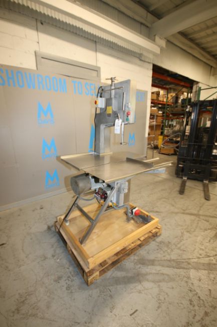 AEW S/S Band Saw, M/N 400M, S/N LHS325796, with S/S Cutting Area, Mounted on S/S Frame (NOTE: Missing Blades) (IN#70903)(LOCATED AT M. DAVIS GROUP AUCTION SHOWROOM--PITTSBURGH, PA) (Rigging, Handling & Site Management Fee: $100.00)