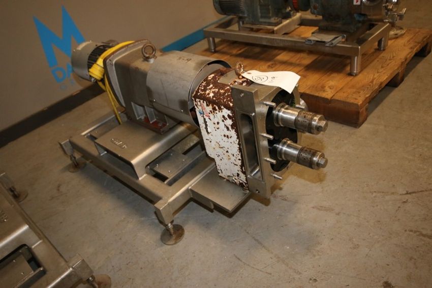 APV 5 hp Positive Displacement Pumps, Size: R4HD, S/N K-16688-96, with (2) Rubber Impellers, with with Aprox. 3" Thread Type Inlet/Outlet & Long/Narrow Aprox. 9-1/2" Dia., Mounted on S/S Frame (NOTE: Missing Front Cover)(IN#69595)(Located @ the MDG Auction Showroom in Pittsburgh, PA) (Rigging, Handling & Site Management Fee: $200.00)