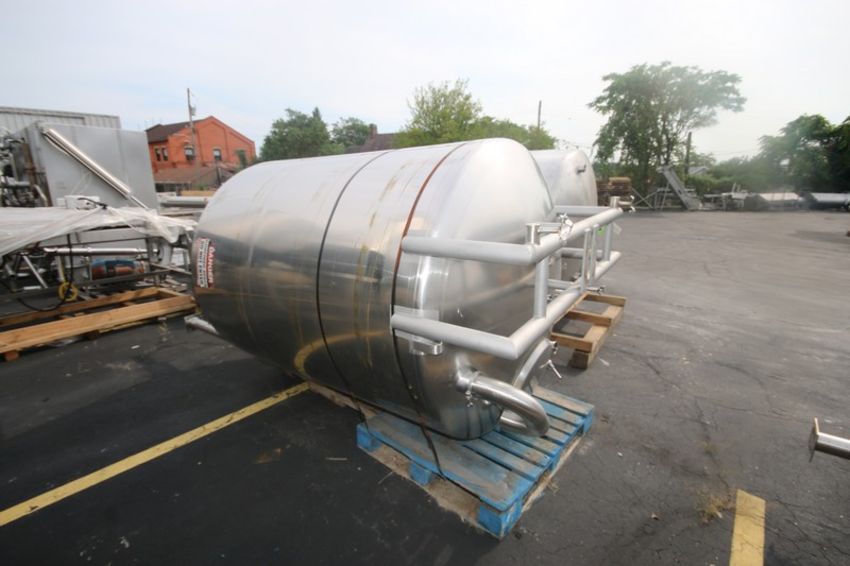Aprox. 1,000 Gal. S/S Insulated Vertical Tank, Tank Dims.: Aprox. 77" L x 64" Dia., with Cone Bottom, with Top Mounted Agitation S/S Rack, Mounted on S/S Legs (INV#73199) (LOCATED AT M. DAVIS GROUP AUCTION SHOWROOM--PITTSBURGH, PA) (Rigging, Handling & Site Management Fee: $350.00)