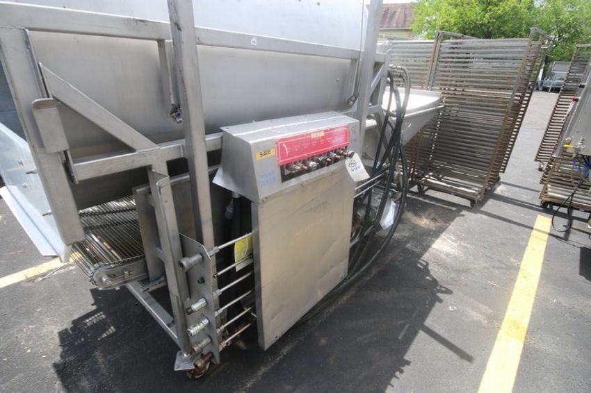 Nothum S/S Tumbler, M/N NRP-40, with S/S Mesh Infeed Conveyor, Aprox. 40" W, with Aprox. 46" Dia. Tumbler, Mounted on Portable S/S Frame (IN#70458)(Located at MDG Auction Showroom--2300 Palmer St. Pittsburgh, PA 15218)(Rigging, Handling & Site Management Fee: $300.00)