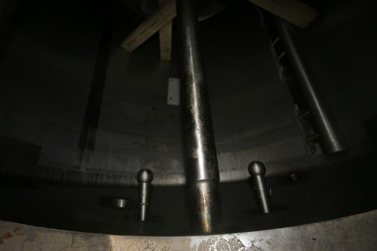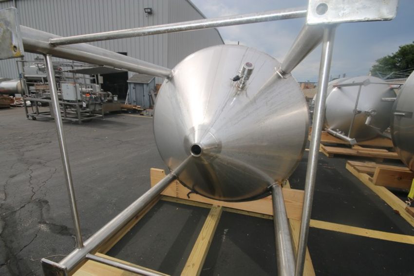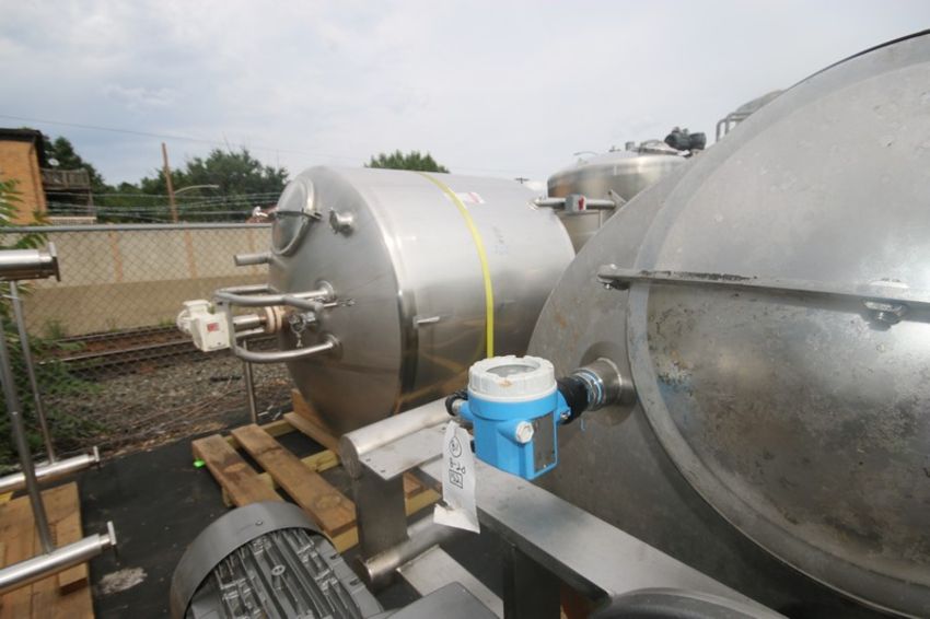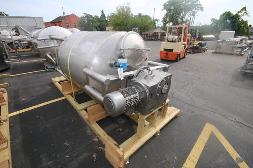 Aprox. 500 Gal. S/S Single Wall Vertical Tank, Tank DIms.: Aprox. 60" L x 52" Dia., with Dual S/S CIP Spray Ball, with Scrap Agitation, with Top Mounted Nord Agitation Motor, Mounted on S/S Legs (INV#70990)(LOCATED AT M. DAVIS GROUP AUCTION SHOWROOM--PITTSBURGH, PA) (Rigging, Handling & Site Management Fee: $350.00)
