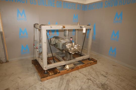 Waukesha 30 hp Positive Displacement Pump, M/N 220U2, S/N 369823-04, with 4" Clamp Type S/S Head, with 1755 RPM Motor, 230-460 Volts, 3 Phase, Mounted on S/S Frame (INV#70982) (LOCATED AT M. DAVIS GROUP AUCTION SHOWROOM--PITTSBURGH, PA) (Rigging, Handling & Site Management Fee: $200.00)