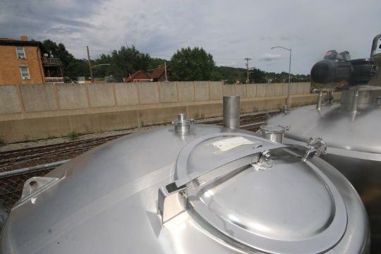 2000 Feldmeier Aprox. 500 Gal. S/S Tank, S/N A-752-00, Dome Top Cone Bottom, with Top Access Door, S/S Legs, CIP Sprayball, Vent, 3" & 4" Top Clamp Type Connections, 4" Clamp Type Bottom Connection with Sensor, Overall Dims.: Aprox. 94" H x 60" W (INV#70992) (LOCATED AT M. DAVIS GROUP AUCTION SHOWROOM--PITTSBURGH, PA) (Rigging, Handling & Site Management Fee: $350.00)