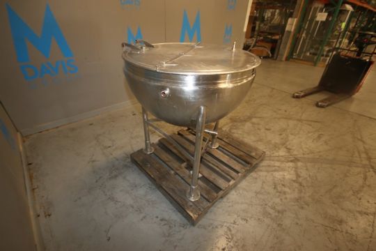 Groen 60 Gal. S/S Kettle, S/N 25136, 40 W.P., Mounted on S/S Legs, with (2) S/S Hinge Lids (IN#69011) (Located at the MDG Auction Showroom in Pgh., PA)(Rigging, Handling & Site Management Fee: $125.00)