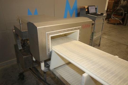 Safeline S/S Metal Detector,with Aprox. 15-1/2" W x 5" H x 11" Deep, with Conveyor Aprox. 128" L x 14" W Belt, with Digital Read Out, Mounted on S/S Portable Frame (IN#71783)(LOCATED AT MDG AUCTION SHOWROOM--PGH., PA) (Rigging, Handling & Site Management Fee: $150.00)