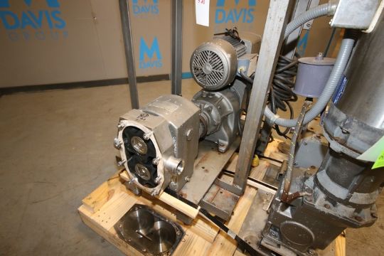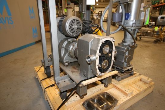 APV Crepaco 5 hp Positive Displacement Pump, Size: R4R, S/N E-4936, with Aprox. 2" Thread Type Inlet/Outlet, Includes (2) Rubber Impellers, with U.S. Electric 1730 RPM Motor, Mounted on Portable Frame (IN#69712)(Located @ the MDG Auction Showroom in Pittsburgh, PA)(Rigging, Handling & Site Management Fee: $250.00)