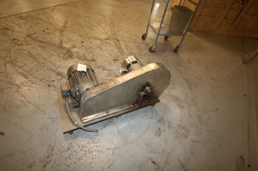 Tri-Clover 5 hp Positive Displacement Pump, M/N PR1125-21/2/2MUC4-WT-S, S/N 130361-01, with Aprox. 2-1/2" Clamp Type Inlet/Outlet, with Reliance 1160 RPM Motor, 230/460 Volts, 3 Phase (INV#69004) (Located at the MDG Auction Showroom in Pgh., PA)(Rigging, Handling & Site Management Fee: $50.00)