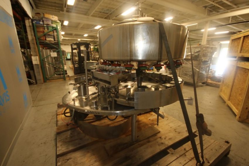 Franz 21-Valve Rotary Filler, with Small Section of Infeed, Mounted on S/S Legs, Currently Set-Up for 1/2 Gallon (IN#69002)(LOCATED AT M. DAVIS GROUP AUCTION SHOWROOM--PITTSBURGH, PA) (Rigging, Handling & Site Management Fee: $450.00)