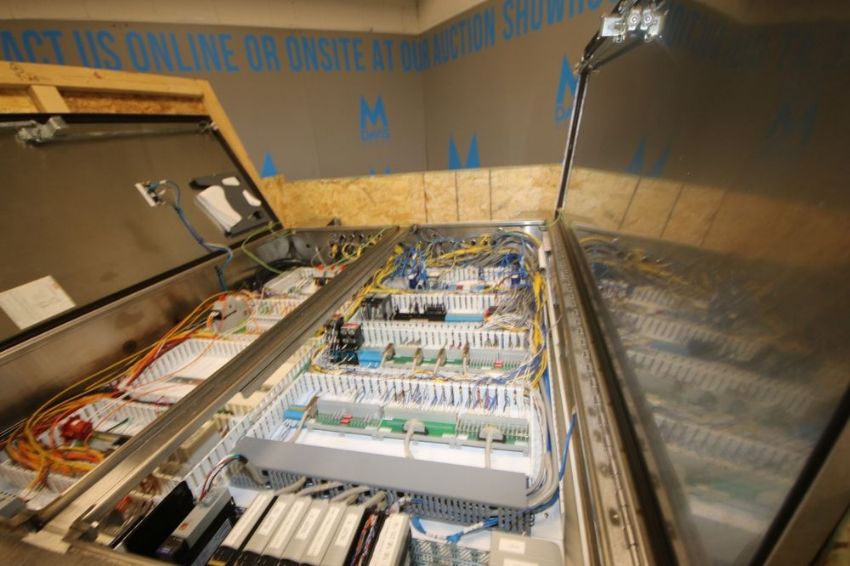 Hoffman 2-Door S/S Control Panel, with Allen-Bradley 18-Slot PLC & Other Associated Controls, Overall DIms.: Aprox. 59" L x 12" W x 78" H (IN#66882)(LOCATED AT MDG AUCTION SHOWROOM--PITTSBURGH., PA) (Rigging, Handling & Site Management Fee: $150.00)