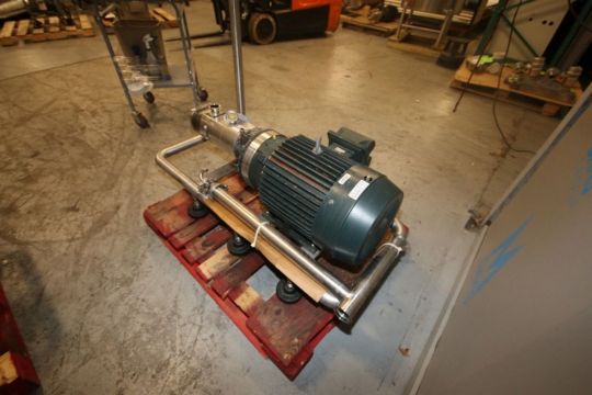 Axiflow 15 hp STS Pump, with Twin Screw Design, Aprox. 2" & 3" Clamp Type S/S Head, 1175 RPM, 230/460 Volts, 3 PHase, Mounted on S/S Frame (NOTE: Missing I.D. Plate) (INV#74845)(Located @ the MDG Auction Showroom in Pittsburgh, PA) (Rigging, Loading & Site Management Fee: $175.00 )