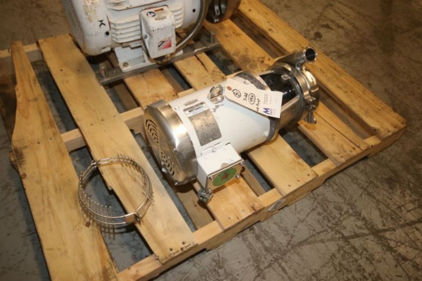 Waukesha Cherry-Burrell 5/3 hp Centrifugal Pump, M/N 0216, S/N 1000002792986, with Leeson 3515/2910 RPM Motor, 208-230/460 Volts, 3 Phase, with Aprox. 2" x 1-1/2" Clamp Type Inlet/Outlet S/S Head (IN#71025)(LOCATED AT MDG AUCTION SHOWROOM--PGH., PA) (Rigging, Handling & Site Management Fee: $50.00)
