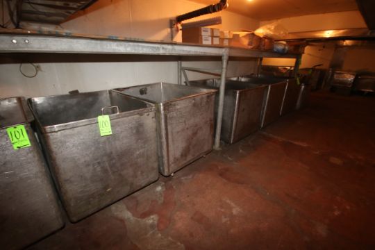 S/S Stationary Totes, Overall Dims.: Aprox. 49" L x 37" W x 45" H (Located on Basement Floor--McKees Rocks, PA)(Rigging, Handling & Site Management Fee: $150.00)