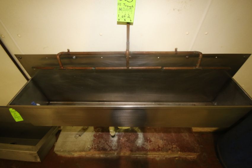 S/S Wash Traughs, 1-Installed with Sections of Spray Down Pipe, Overall Dims.: Aprox. 61" x 10-1/2" x 25" H, & 1-Unstalled Traugh, Overall Dims.: Aprox. 40" L x 12" W x 16" H (Located on 1st Floor--McKees Rocks, PA)(Rigging, Handling & Site Management Fee: $100.00)