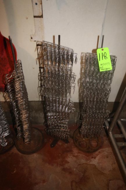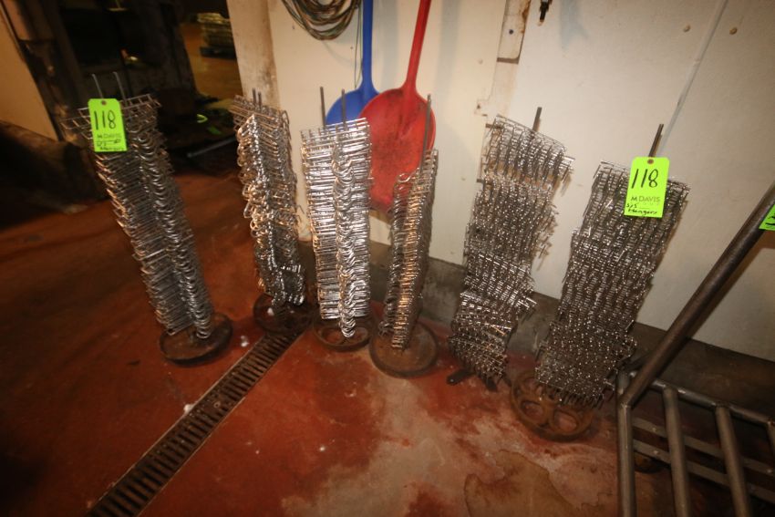 S/S Meat Hangers, with Hanging Hooks, Hanging on (5) Racks (Located on 1st Floor--McKees Rocks, PA)(Rigging, Handling & Site Management Fee: $50.00)