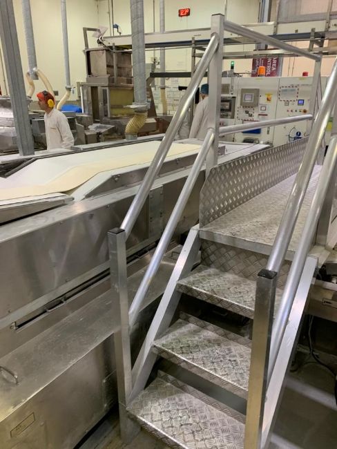 Rheon 'Right Angle' Dough Band Feeding System for Two (2) Make Up Lines (5.6m long)(All Machines are in Working Order/Ex-Factory Condition with Manuals.)