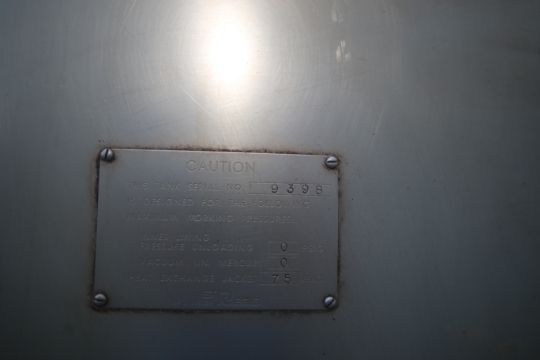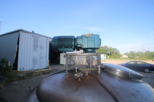 St. Regis Aprox. 450 Gal. S/S Processor, S/N 9398, Heat Exchange Jacket 75 PSIG, Tank Dims.: Aprox. 41" Tall x 59" Dia., with Top Mounted Agitation Motor (LOCATED IN SULPHUR SPRINGS, TX)(Rigging, Handling & Site Management Fee: $300.00)