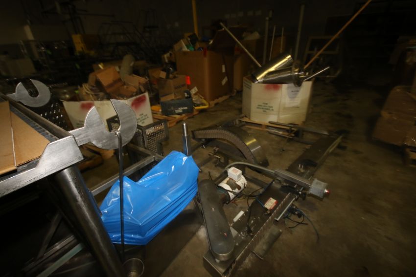 Large Assortment of Misc.S/S Thread Type Fittings, Conveyor Sections with Missing Parts, S/S Piping, S/S Fittings, S/S Platform, S/S Framing, & Other Present Contents As Photographed (LOCATED IN WINNSBORO, TX) (Rigging, Handling & Site Management Fee: $200.00)