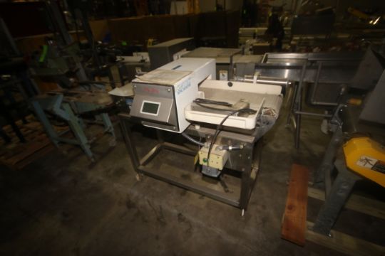 Cintex Metal Detector, M/N CS2072, S/N 34122, Product Opening: Aprox. 9" W x 4-1/2" H, with Reject Cylinder, Mounted on S/S Frame (LOCATED IN WINNSBORO, TX)(Rigging, Handling & Site Management Fee: $250.00)