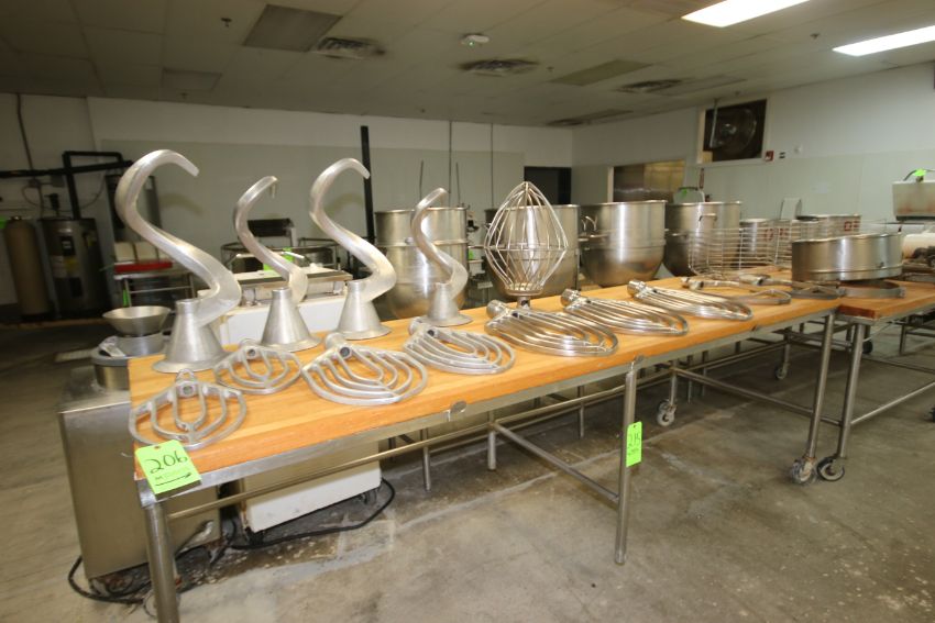 Assortment of Hobart Mixer Attachment & Parts, Includes (7) Flat Beater Attachments, Assorted Sizes, (4) Dough Hooks, Assorted Sizes, (1) Whip Attachment, (2) Other Beater Attachments, Assorted Sized, (3) Protection Cages, (1) S/S Bowl Extension, & (2) S/S Mixing Bowl Skates (LOCATED AT BAKE SHOP--409 AIRPORT BLV. MORRISVILLE, NC)(Rigging, Handling & Site Management Fee: $150.00)
