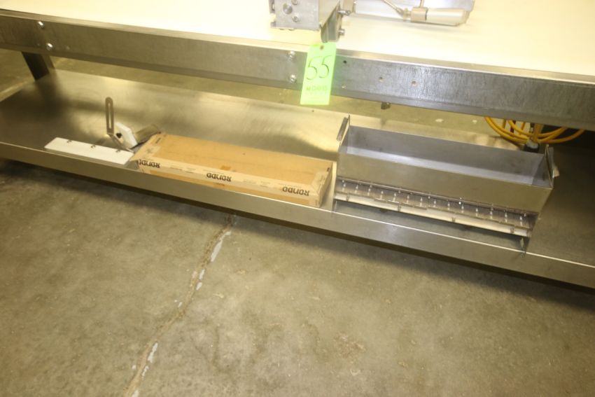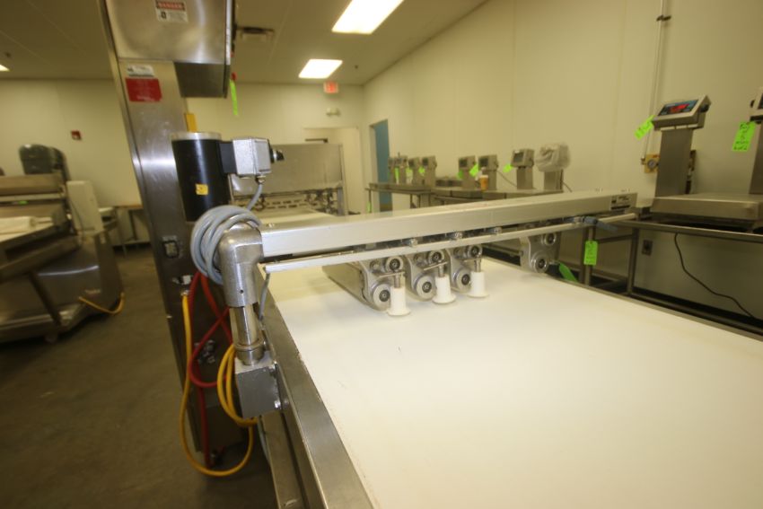 Rondo Doge Automatic Compactline, M/N SPF 602 G, Machiner Nr. C3213302, Pneumatic Guillotine, & Stamping Station, with Aprox. 25" L Conveyor Belt, Mounted on Portable S/S Frame, Includes Speed Aire 7.5 hp Recip. Air Compressor, M/N 5Z639A, 25.1 CFM @ 175 PSI Max., Overall Size: Aprox. 35" W x 77" T x 28" Deep (LOCATED AT BAKE SHOP--409 AIRPORT BLV. MORRISVILLE, NC 27560)(Rigging, Handling & Site Management Fee: $1,750.00)***This piecemeal bid is subject to the Bulk Bid in Lot 54***