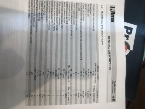 2016 Nilma Pasta Cooking Line, Includes Nilma Type C80/2V. VAP Linea (line) Pasta Cooker, S/N 1623403 Nilma Type Rafreddatore 80 KG Pasta Cooler, S/N 1625602