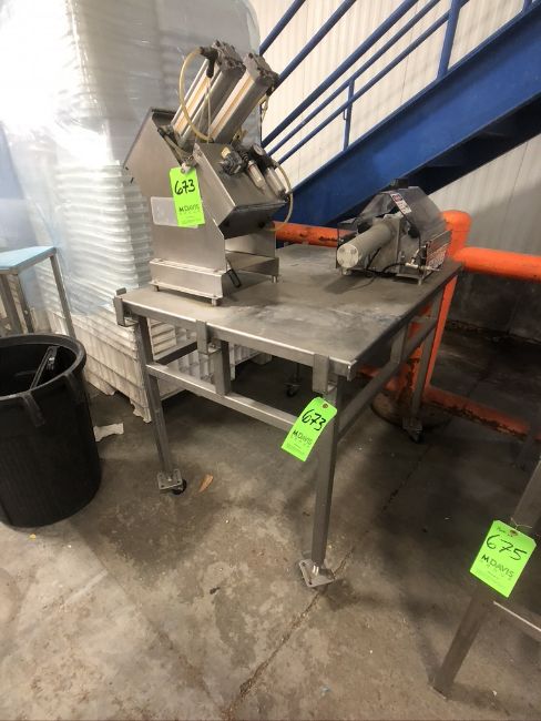 PORTABLE S/S TABLE APPX DIM. L48" X W36" X H38" WITH (1) NEMCO FRENCH FRY CUTTER AND (1) TS DESIGNS DUAL AIR STICK CUTTER