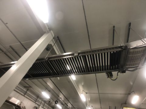 S/S ROLLER CONVEYOR WITHOUT MOUNTS, (1) SPANTECH, MULTISPAN, INCLINE / 90 DEGREE TURN CONVEYOR W/ SEW-EURODRIVE MOTOR .75HP, (1) S/S ROLLER CONVERYOR WITHOUT MOUNTS, (1) SPANTECH MULTISPAN INCLINE CONVEYOR (MOTOR?) APPX 60' OF STRAIGHT/ INCLINE, CONTINUES AFTER TURN TO STRAIGHT/ INCLINE APPX 38', APPX WIDTH OF ALL CONVEYORS 30'' , INCLUDES MCC-1 S/S CONTROL CABINET EQUIPPED W/ ALLEN-BRADLEY MICROLOGIX 1100 PLC