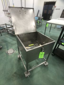 S/S PARTS CART WITH PERFORATED BOTTOM, PORTABLE /MOUNTED ON CASTERS APPX DIM. LWH'' 24 X 24 X 36, 12'' DEPTH