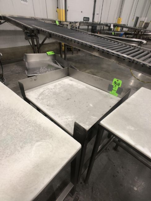 (4) S/S TABLES VARIOUS SIZES AND DIMENSIONS, CUTTING BOARD TOPS AND GUARDS