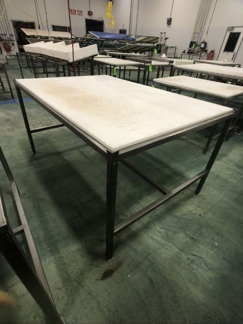 S/S TABLE WITH UMHW CUTTING BOARD TOP, APPX DIM. LWH''72 X 48 X 36