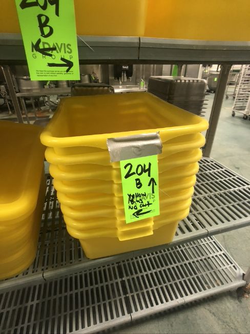 (22) YELLOW BINS AND (22) LIDS APPX DIM. L20'' X W15'' X H7''