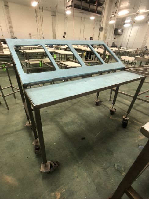 PORTABLE S/S PACKOFF TABLE, MOUNTED ON CASTERS, 64"X34"X55" (APPROX. L W H)