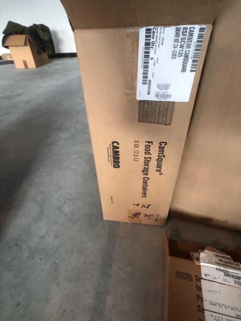 (1) BOX OF NEW SQUARE 18 Qt. FOOD STORAGE CONTAINERS WITH GRADATIONS, WITH LIDS -- APPX 6 CONTAINERS, (1) BOX UNUSED SQUARE 18 Qt. FOOD STORAGE CONTAINERS WITH GRADATIONS, LIDS -- APPX 4 CONTAINERS, (1) BOX OF 8 Qt. FOOD STORAGE CONTAINERS WITH GRADATIONS, WITH LIDS -- APPX 5 CONTAINERS IN BOX (Rigging and Loading Fee, Packaging Available at Extra Cost): $25