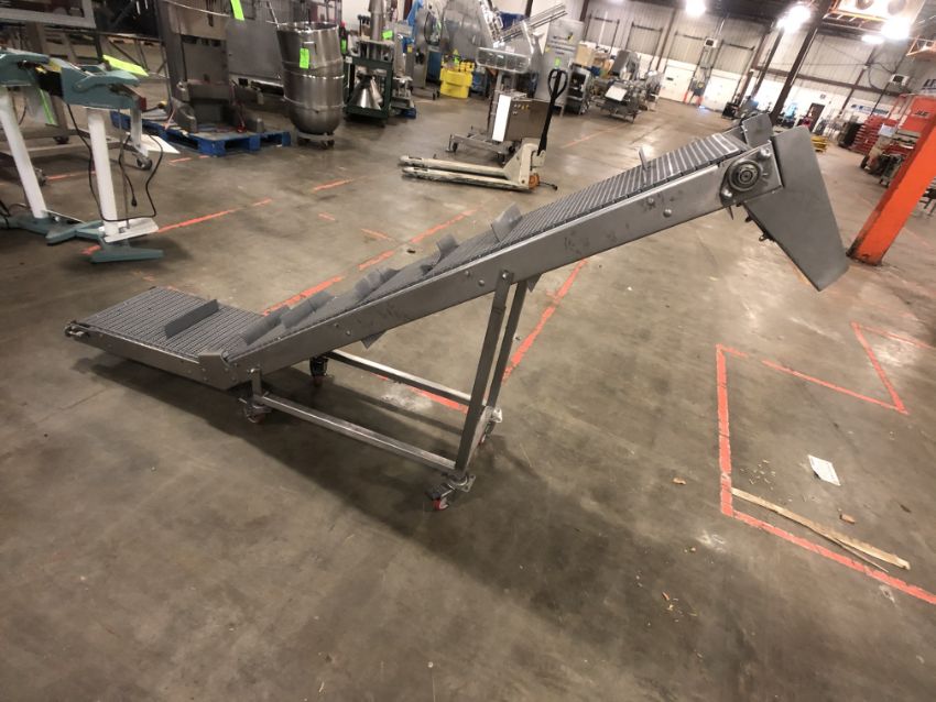 INCLINE CONVEYOR W/ FLIGHTS APPX L90'' X W14'' ELEVATES TO 48''