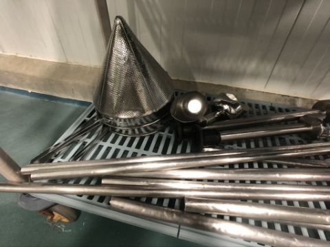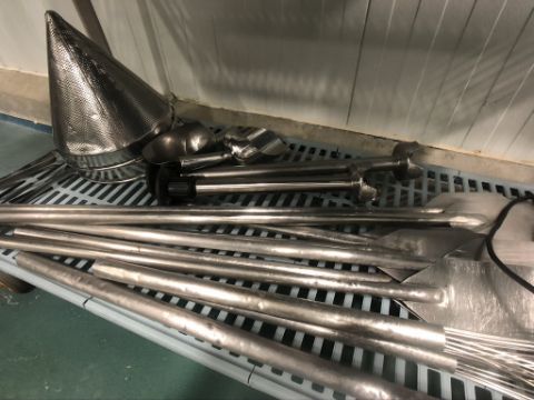 S/S SANITARY PADDLES (7), S/S SANITARY WHISKS (3), WARING IMERSION STICK BLENDER (1), S/S SCOOPS (2), S/S CONICAL SIFTERS (2)