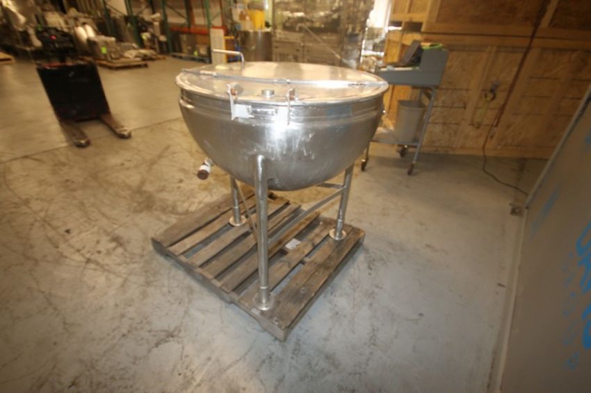 Groen 60 Gal. S/S Kettle, S/N 25136, 40 W.P., Mounted on S/S Legs, with (2) S/S Hinge Lids (IN#69011) (Located at the MDG Auction Showroom in Pgh., PA)(Rigging, Handling & Site Management Fee: $125.00)