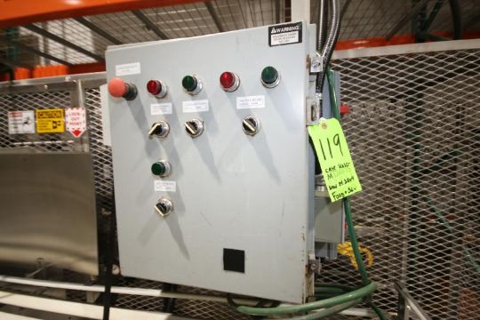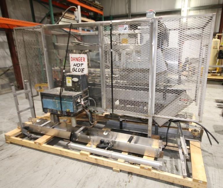 with 12" W Belt, Nordson Gluer, with Controls Including Direct Logix 05 PLC Controller, S/S Safety Cage Enclosure, Includes (3) pcs. S/S Product Conveyor Sections with Drive, (Overall Dim. Aprox. 10 ft L x 66" W x 8 ft H)(INV#63828)(Located @ MDG Showroom - Pittsburgh, PA) (Rigging, Loading & Site Management Fee $200.00)