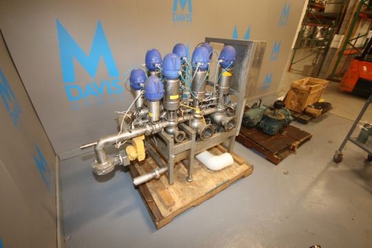 Alpha-Laval S/S ThinkTop Air Valves, with (2) S/S Actuated Discharge Ball Valves, Mounted on S/S Frame (INV#68426) (LOCATED @ MDG AUCTION SHOWROOM--PITTSBURGH, PA) (Rigging, Loading & Site Management Fee: $50.00 USD)