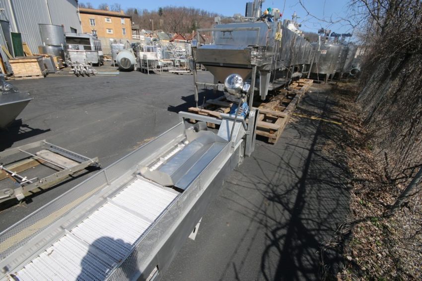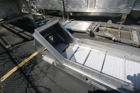 S/S Cleated Incline Conveyor,Aprox. 11' 8" L, with Aprox. 24" W Belt, Flight Spacing Aprox. 12" W, with Sterling 2 hp S/S Clad Drive, 1750 RPM, 208-230/460 Volts, 3 Phase (INV#68825) (Located at the MDG Showroom - Pittsburgh, PA) (Rigging, Loading and Site Management Fee: $150.00 USD)