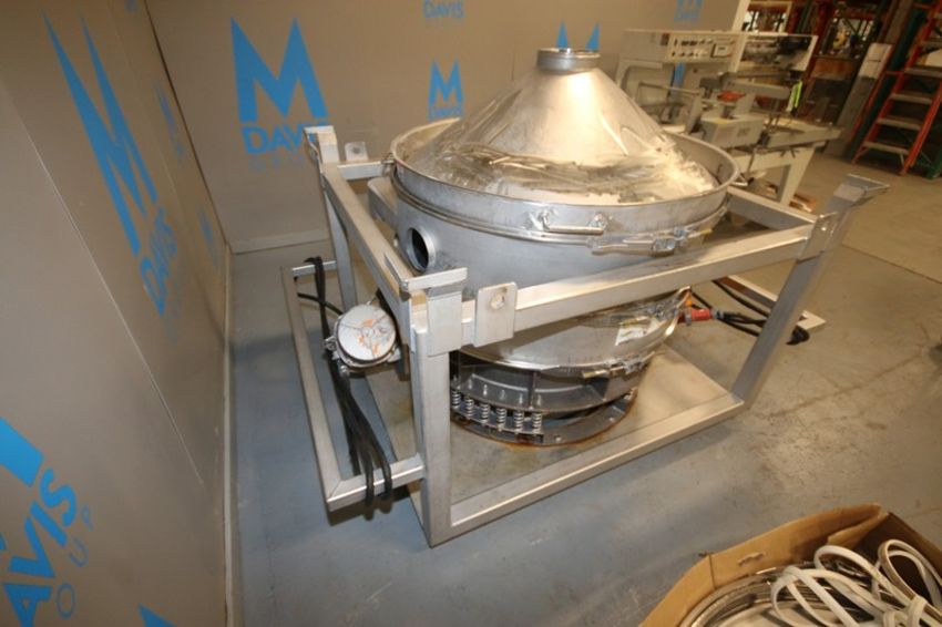 Kason Dual Deck S/S Screener,Aprox. 46" Dia. of Deck, with Kason 0.69 hp Motor, Overall Dims.: Aprox. 59" L x 65" W x 62" H, Mounted on S/S Frame, with Skid of Spare S/S Clamps, Gaskets, & Covers (INV#78127)(Located @ the MDG Showroom - Pittsburgh, PA)(Rigging, Loading & Site Management Fee: $250.00 USD)