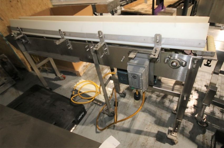 Wells Fab. 6 ft 4” L x 38” H S/S Product Conveyorwith 8” W Plastic Roller Type Chain, SEW Drive Motor, 230 / 460V 3 Phase, Mounted on Casters, (INV#70132) (Located @ the MDG Showroom in Pgh., PA) (Rigging, Loading & Site Management Fee: $75.00)