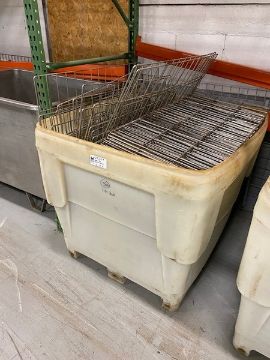 (4) Totes with S/S Racks, 3 of 4 Totes are Plastic Totes, with 1-Cardboard Gaylord Tote, S/S Rack Dims.: Aprox. 41-1/2" L x 22" W (INV#69309) (LOCATED @ MDG AUCTION SHOWROOM--PITTSBURGH, PA) (Rigging, Loading & Site Management Fee: $150.00)