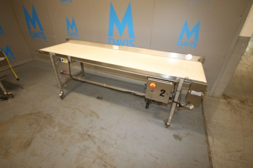 MK North America Straight Section of Conveyor,with S/S Back Splash, Overall Dims.: Aprox. 8' L x 23-1/4" W Belt, Mounted on S/S Portable Frame (Unit#2) (INV#78658)(Located @ the MDG Auction Showroom in Pittsburgh, PA)(Rigging, Loading & Site Management Fee: $150.00 USD)