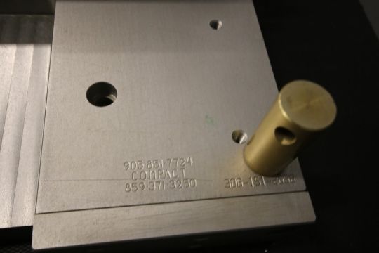 Compact 5-Wide S/S Bottle Molds, S/N 905.851.7724/859.371.3250, Overall Dims.: Aprox. 18-1/4" L x 5-1/2" W x 17" H(INV#69325) (LOCATED AT M. DAVIS GROUP AUCTION SHOWROOM--PITTSBURGH, PA) (Rigging, Handling & Site Management Fee: $75.00)