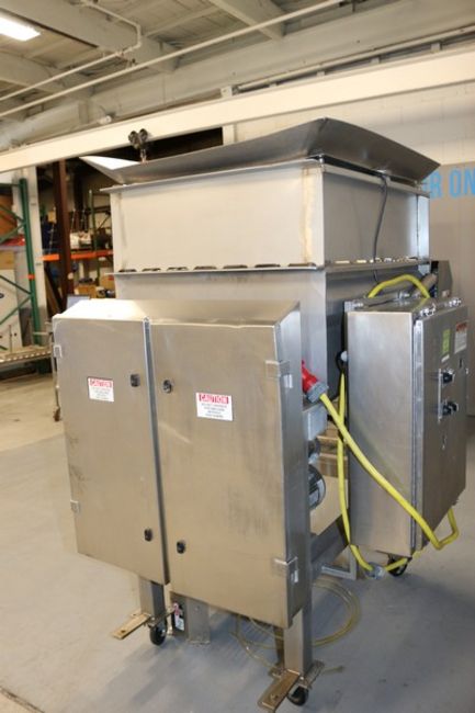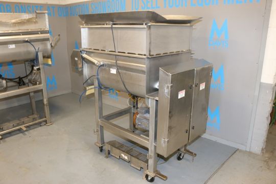 E-Quip 500 lb. Dual Paddle Blender, M/N 301, Factory No.: 11148, with (2) Motors, with S/S Cage Top, with S/S Control Panel with Allen-Bradley Micro-Logix 1000, Mounted on S/S Frame with Casters (INV#75148) (Located @ the MDG Auction Showroom in Pittsburgh, PA)(Rigging, Loading & Site Management Fee: $300.00 USD)