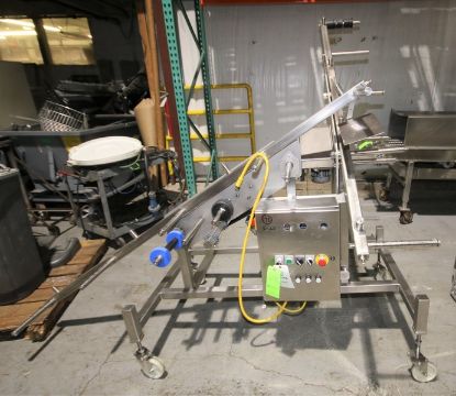 90 Degree Inclined S/S Belt Conveyor System10” W, with Drive Motors, Control Cabinet with Allen Bradley VFD’s, Mounted on Casters, (Note: Belts Not Included), (INV#70036) (Located @ the MDG Showroom in Pgh., PA)(Rigging, Loading & Site Management Fee: $100.00)